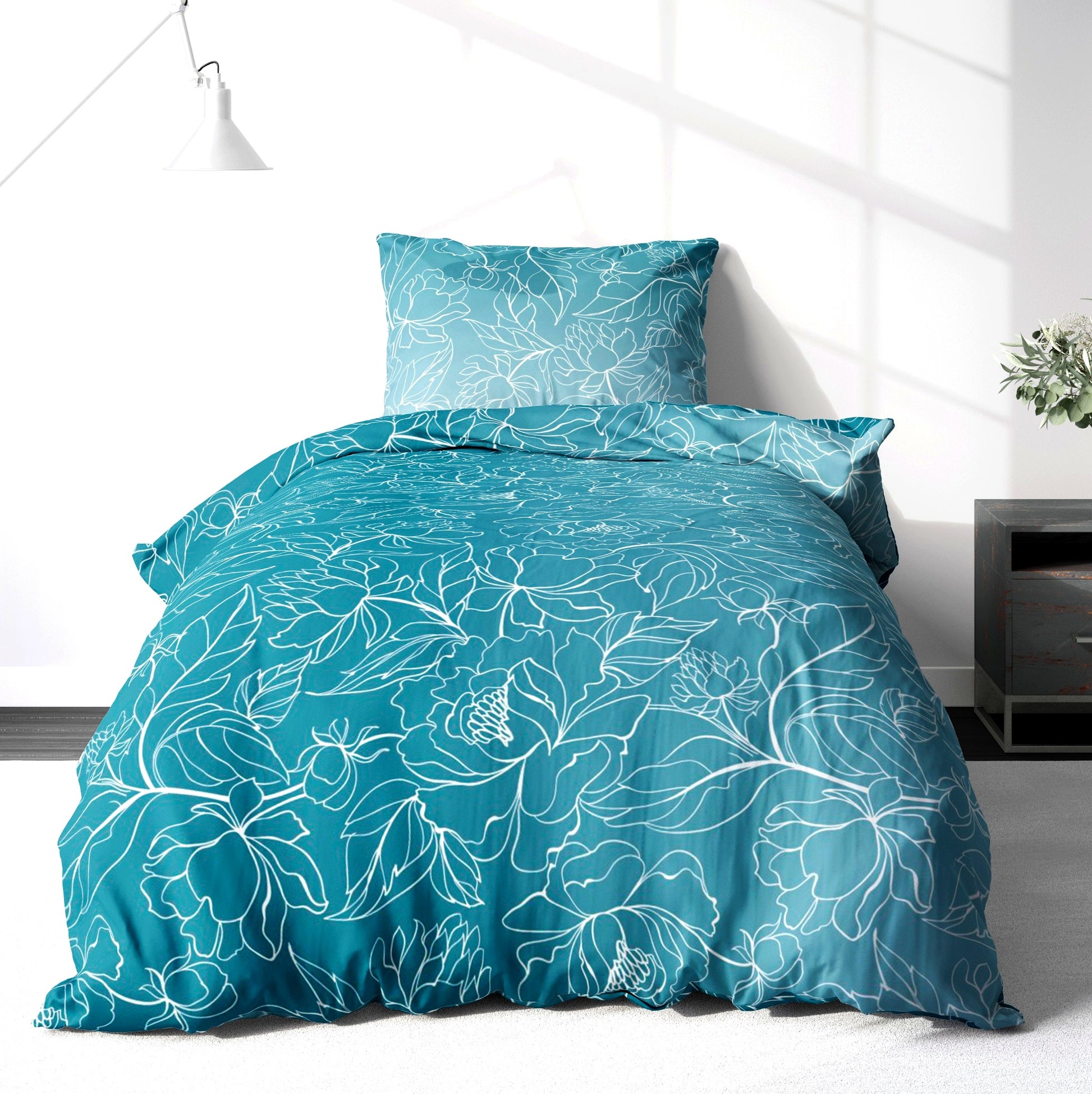 - Weiche und kuschelige Biber-Bettwäsche, perfekt für kalte Nächte. Türkis-Weißes Blumenmotiv bringt Eleganz ins Schlafzimmer.